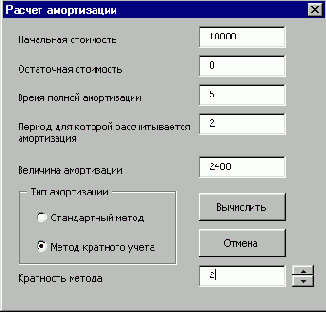 Рис. У4.1. Диалоговое окно Расчет амортизации