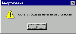 MsgBox "Остаток больше начальной стоимости", vbExclamation, "Амортизация"