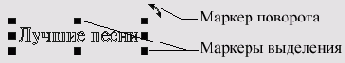 Когда вы подводите указатель мыши к маркеру, внешний вид указателя меняется в зависимости от конкретного маркера, к которому он подведен. Перетаскивая мышью маркер выделения, вы можете произвольно менять размер рамки выделения, тем самым, меняя размер и форму объекта. Перетаскивая маркер поворота, вы поворачиваете объект. Чтобы закончить редактирование, просто щелкните мышью вне рамки выделения. При этом рамка выделения исчезнет.